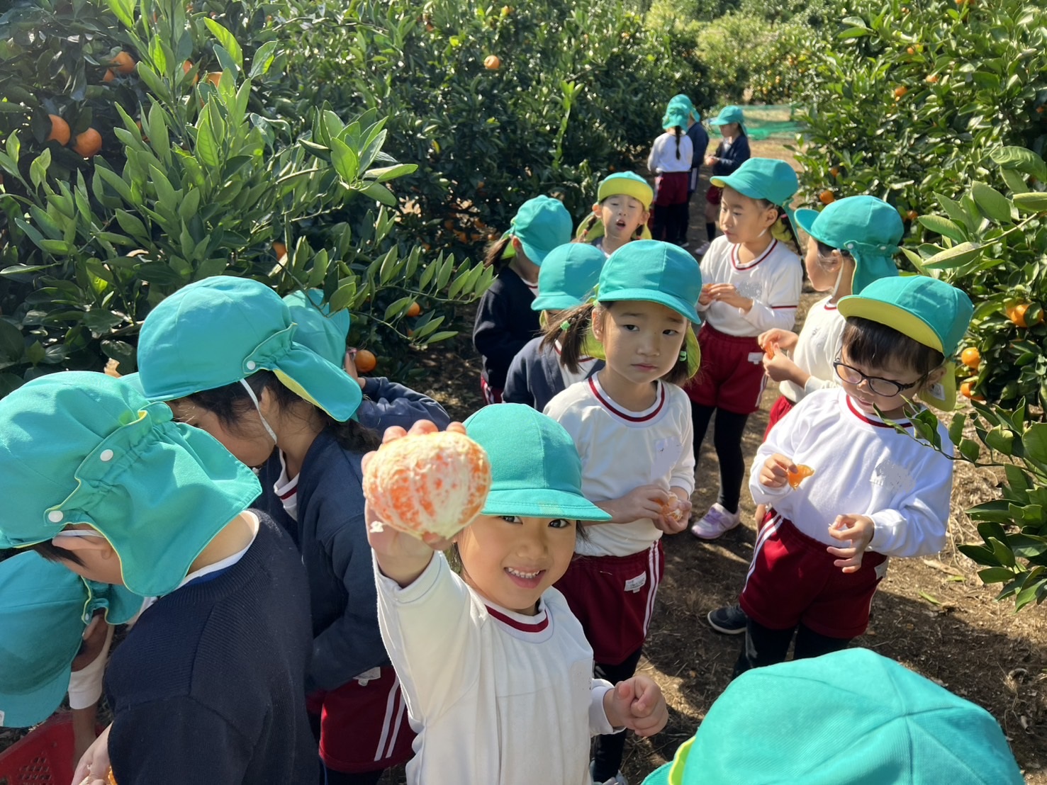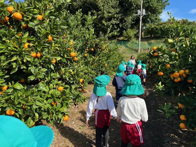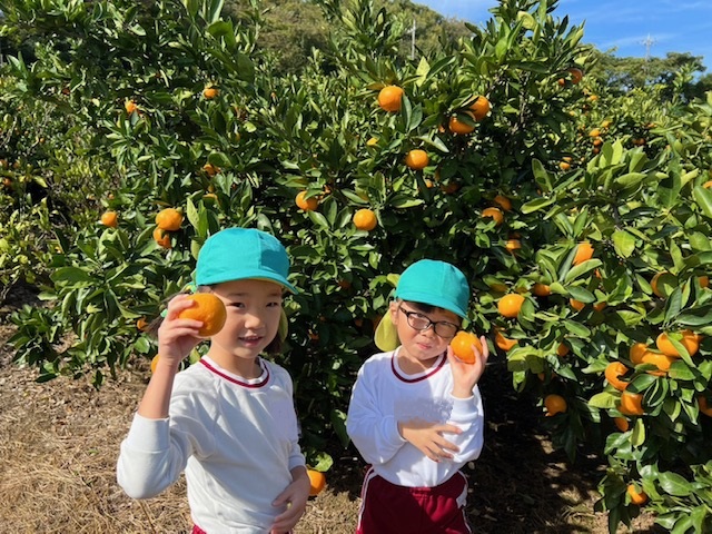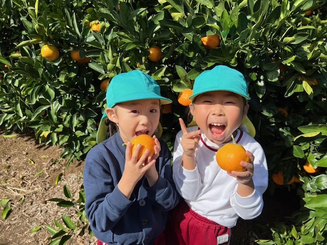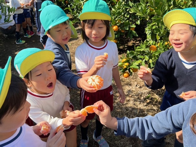 11/04 年長組☆みかん狩り 今日は楽しみにしていたみかん狩りです。年長さんになると、みかんの取り方もお手の物!皮もどんどん剝き「あまーい♡おいしーい♡」とたくさんのみかんを口いっぱいにほおばっていました。10個たべた!と言っている子もいましたよ~ お土産のみかんもいただき、お家の方にあげるんだ♪と張り切っていました(*^^*)
