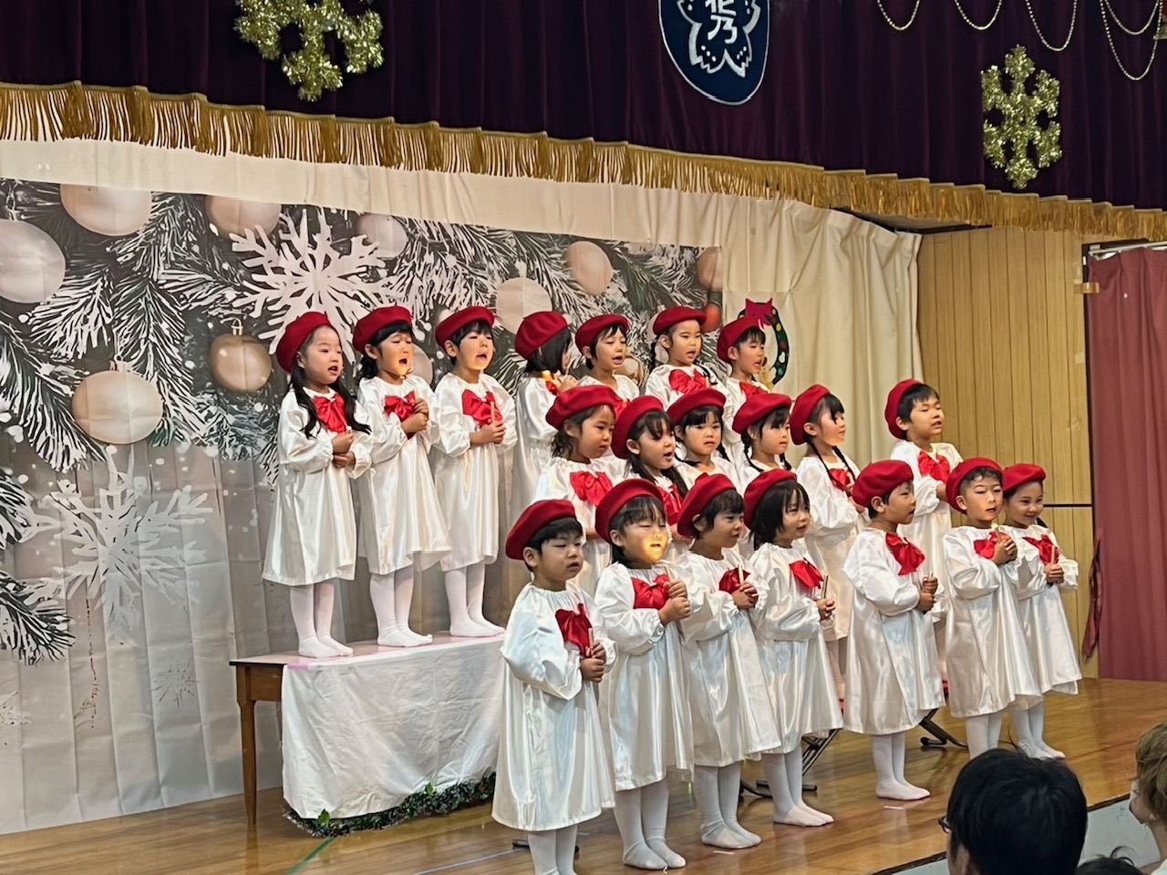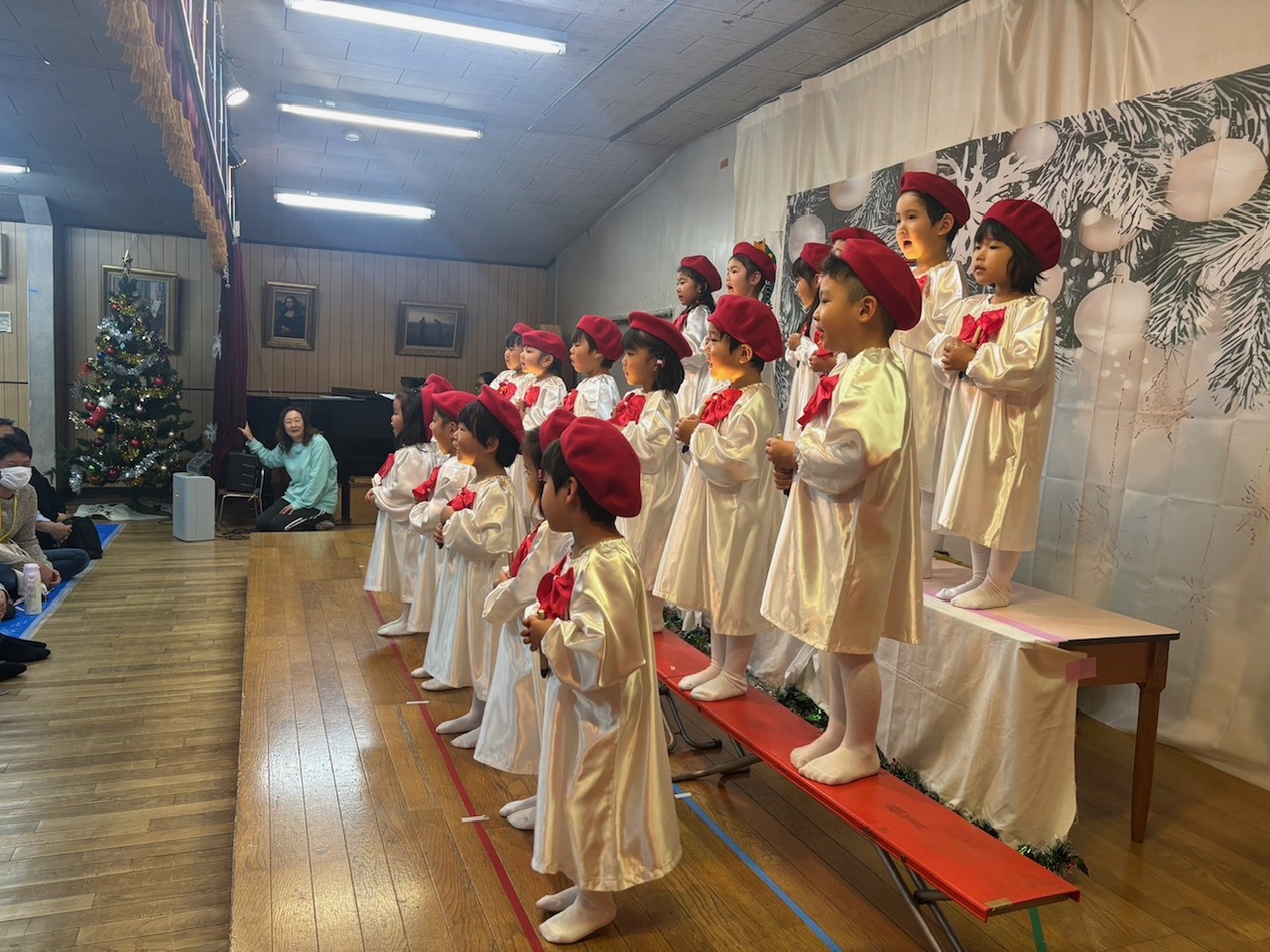 待ちに待ったクリスマス会☆ガウンとベレー帽を身にまとい、静寂な雰囲気での賛美歌はとても素敵でした。オペレッタでは、役になりきり歌をうたいながら演技する姿に見入ってしまいました。きっと、みんなの頑張っている姿、サンタさんも観ていてくれたね★