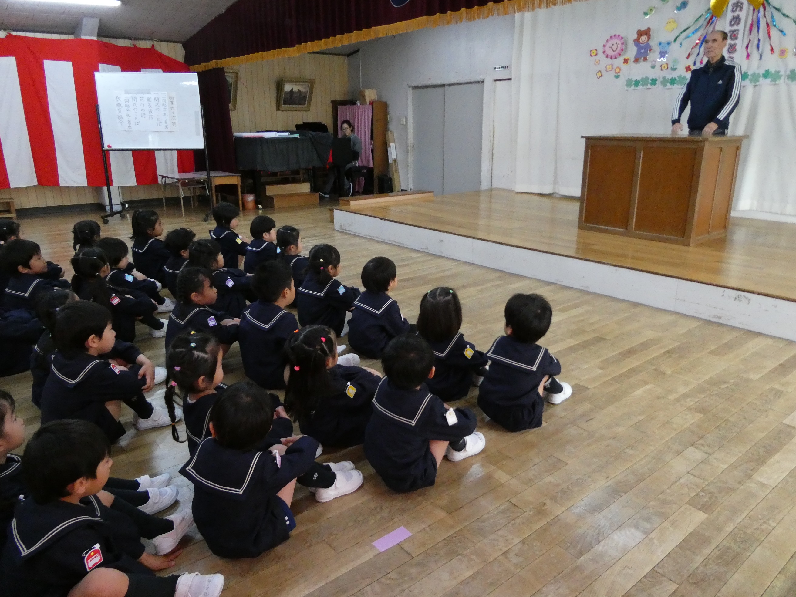 04/07 令和8年度 始業式 本日より新年度がスタートいたしました!始業式では園長先生のお話をしっかりと聞くことができました。新しくなった担任の先生の紹介もあり、大盛り上がりでしたよ☆1つ学年が上がり、新しい名札を付けて「今日から年長さんなんだ!」とうれしそうに、お話ししてくれた子どもたち。これからドキドキワクワクの1年が始まります♪先生とお友達とたくさんの思いで作ろうね♡