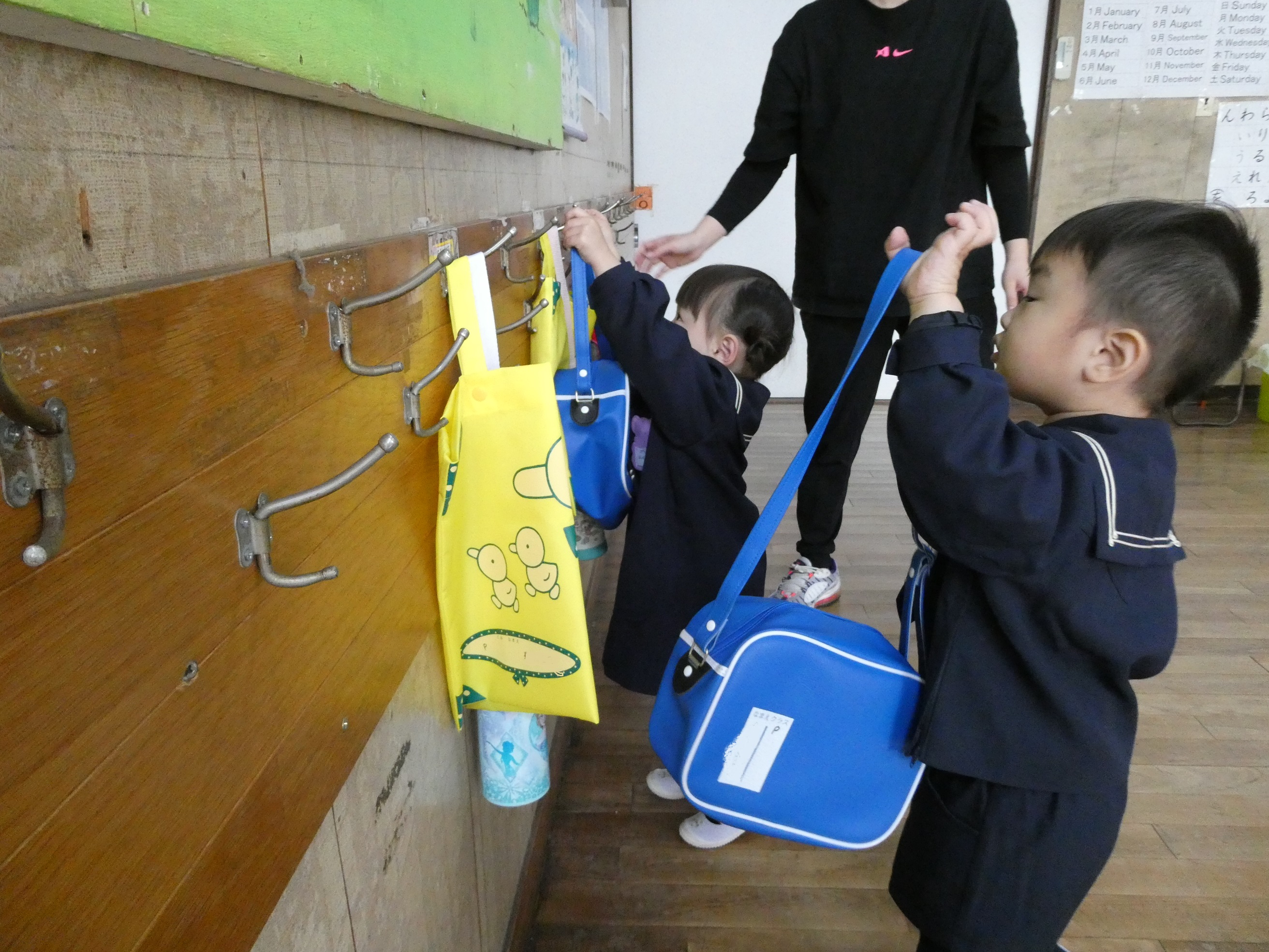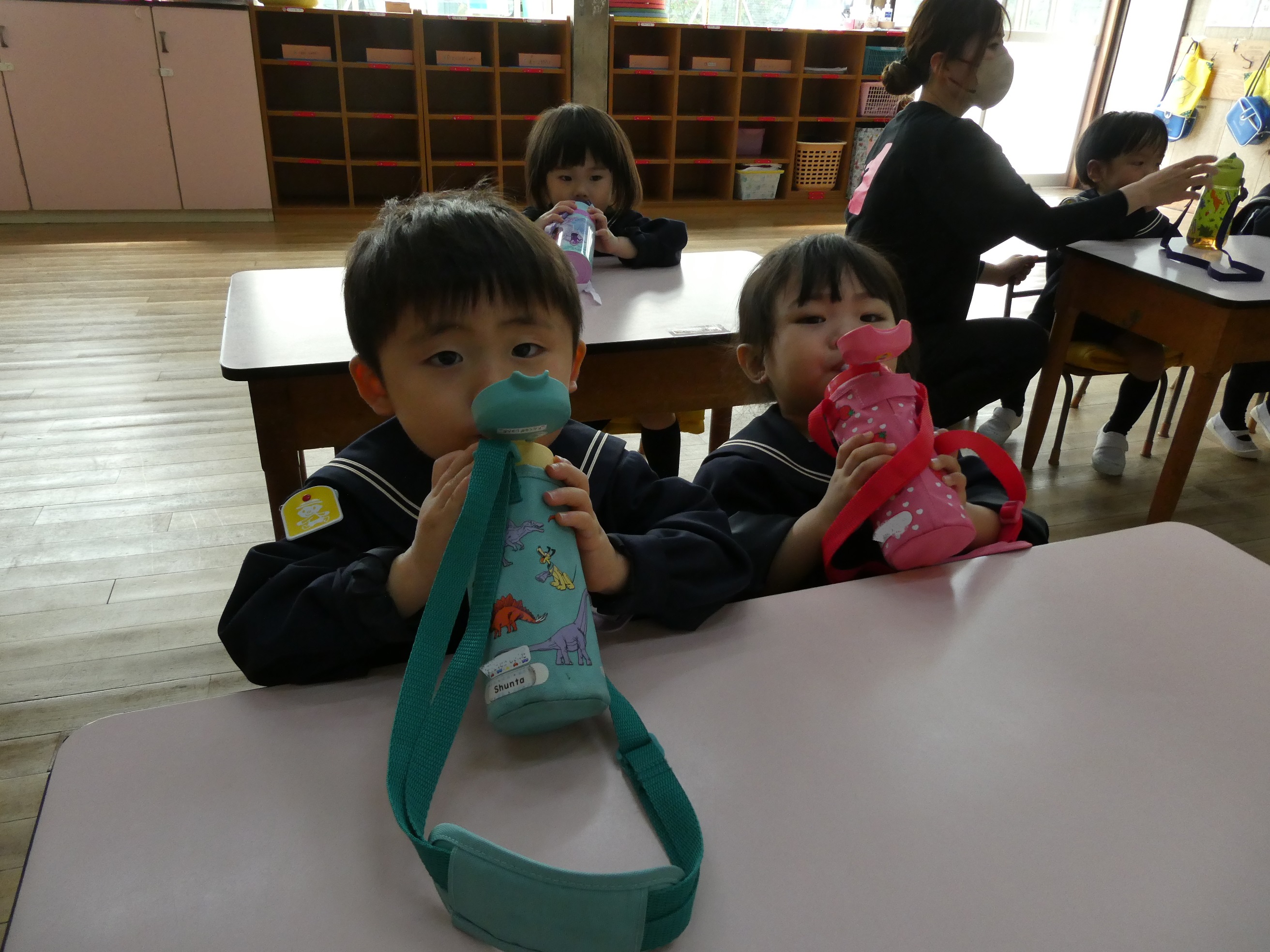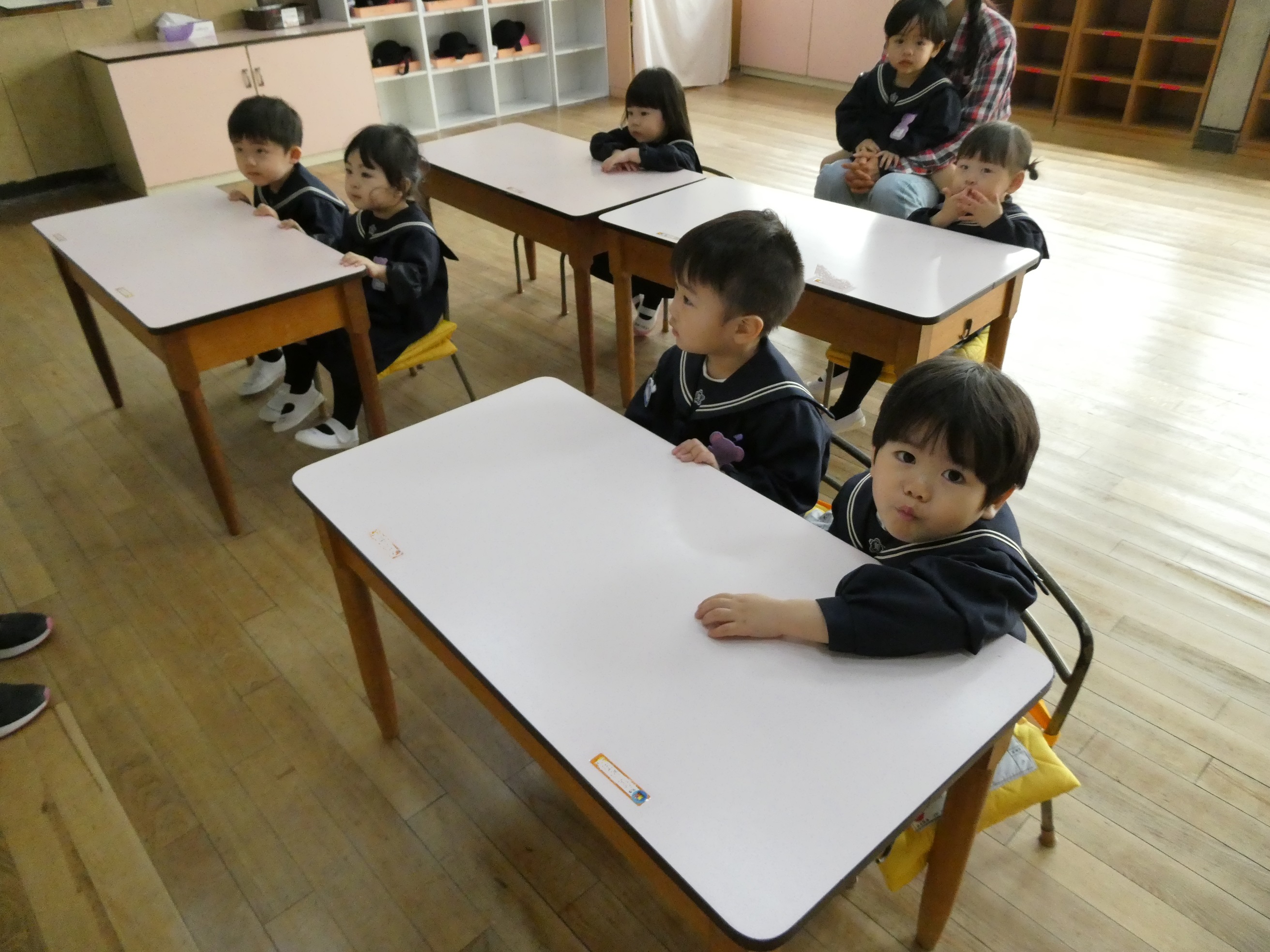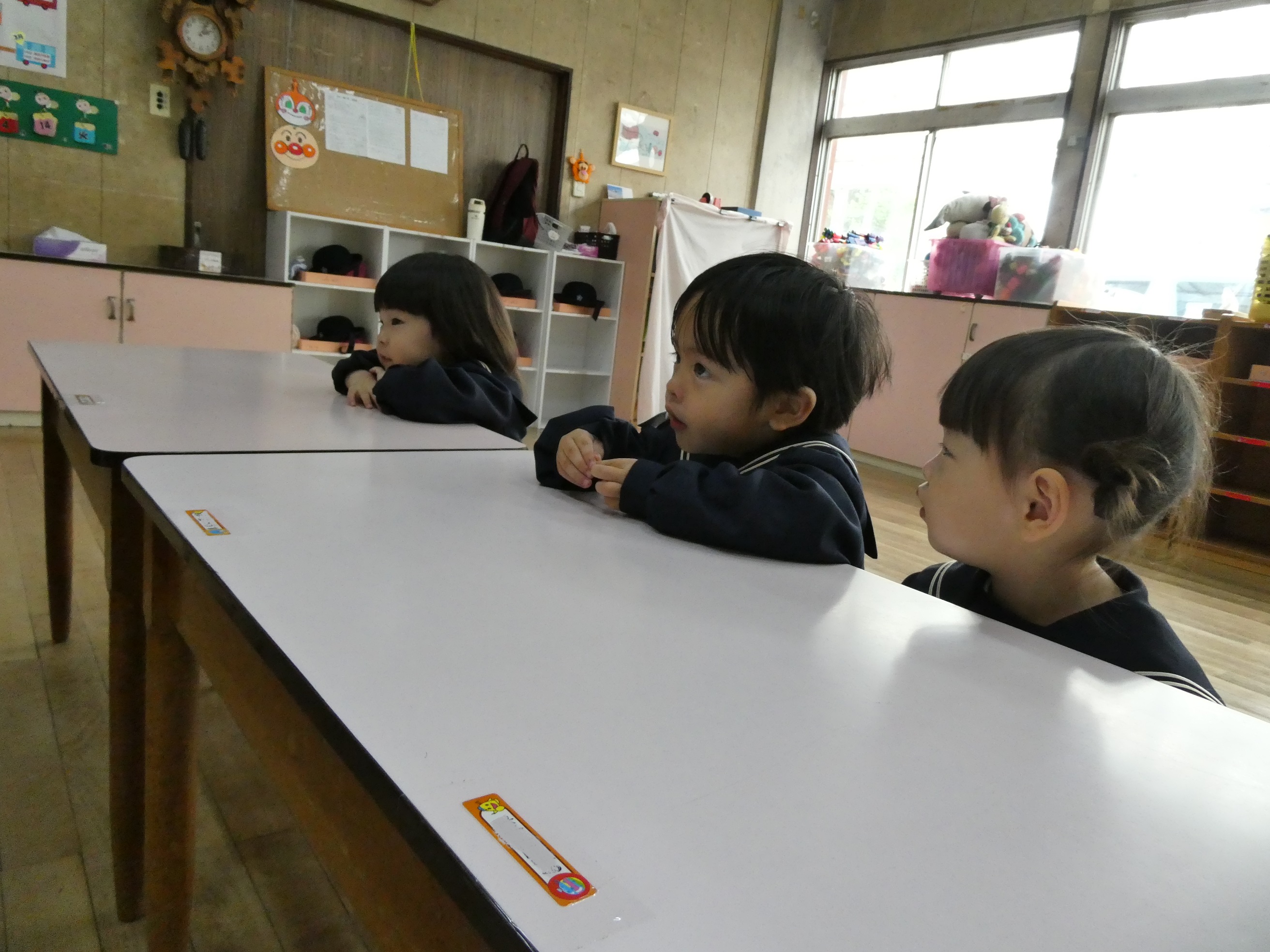 04/14 登園3日目♪ 少し幼稚園にも慣れ、朝泣いて登園してもすぐに泣き止み、活動に参加することができました。椅子に座ることも上手になり、立つときは椅子をしまうお約束もできるようになってきましたよ!まだおうちの方と離れるときに、泣いてしまうこともあり心配だと思いますが、幼稚園では楽しく過ごしていますので、笑顔で「いってらっしゃい」と送り出してあげて下さいね♪