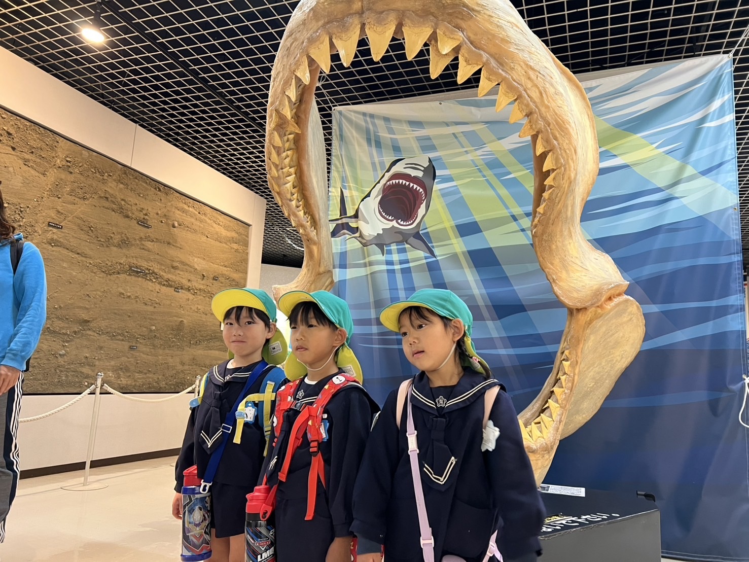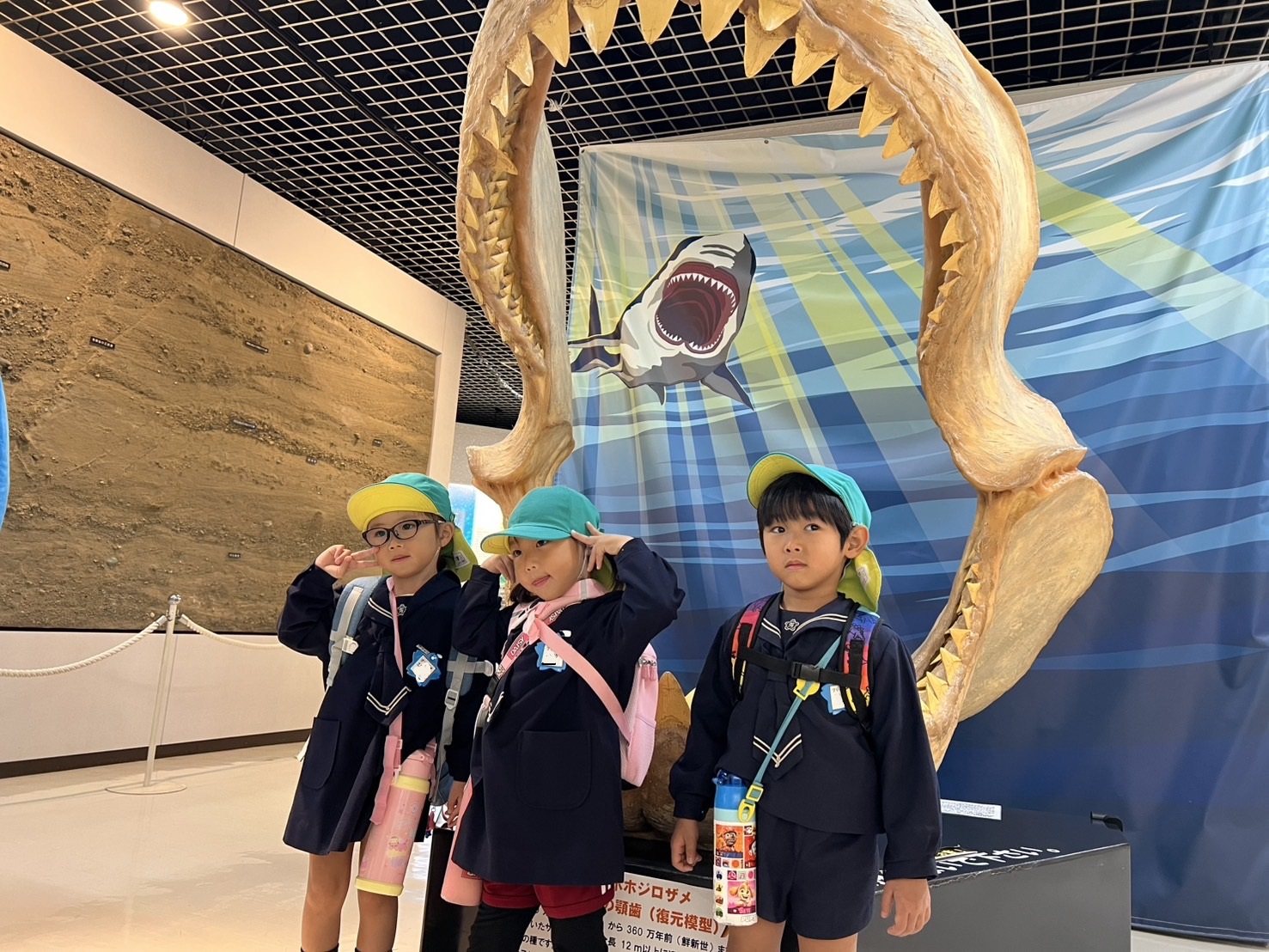 10/24 年長組☆遠足 年長組はプラネタリウムと博物館へ遠足に行ってきました!プラネタリウムに初めて行く子も多く、たくさんの星に感激した様子でした。星座や星の名前を覚え、園に戻ってくるとたくさんお話を聞かせてくれました。博物館では、サメの歯に驚きめをまん丸にしていました!最後は大きな蒸気機関車をみて園に戻りお弁当を食べましたよ♪また一つ素敵な思い出ができたね♡