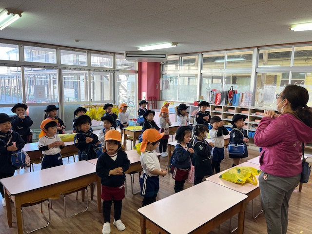 11/14 年長組☆祖父母参観 年長組の祖父母参観でした。なかなかお孫さんの幼稚園での様子を見る機会がないので、とても良い機会だと喜んでいただけました。いつもの甘えた姿ではなく、先生の話をしっかり聞き頑張る姿を見ていただけたと思います♪大好きなおじいちゃんおばあちゃんにたくさんほめてもらってね♡
