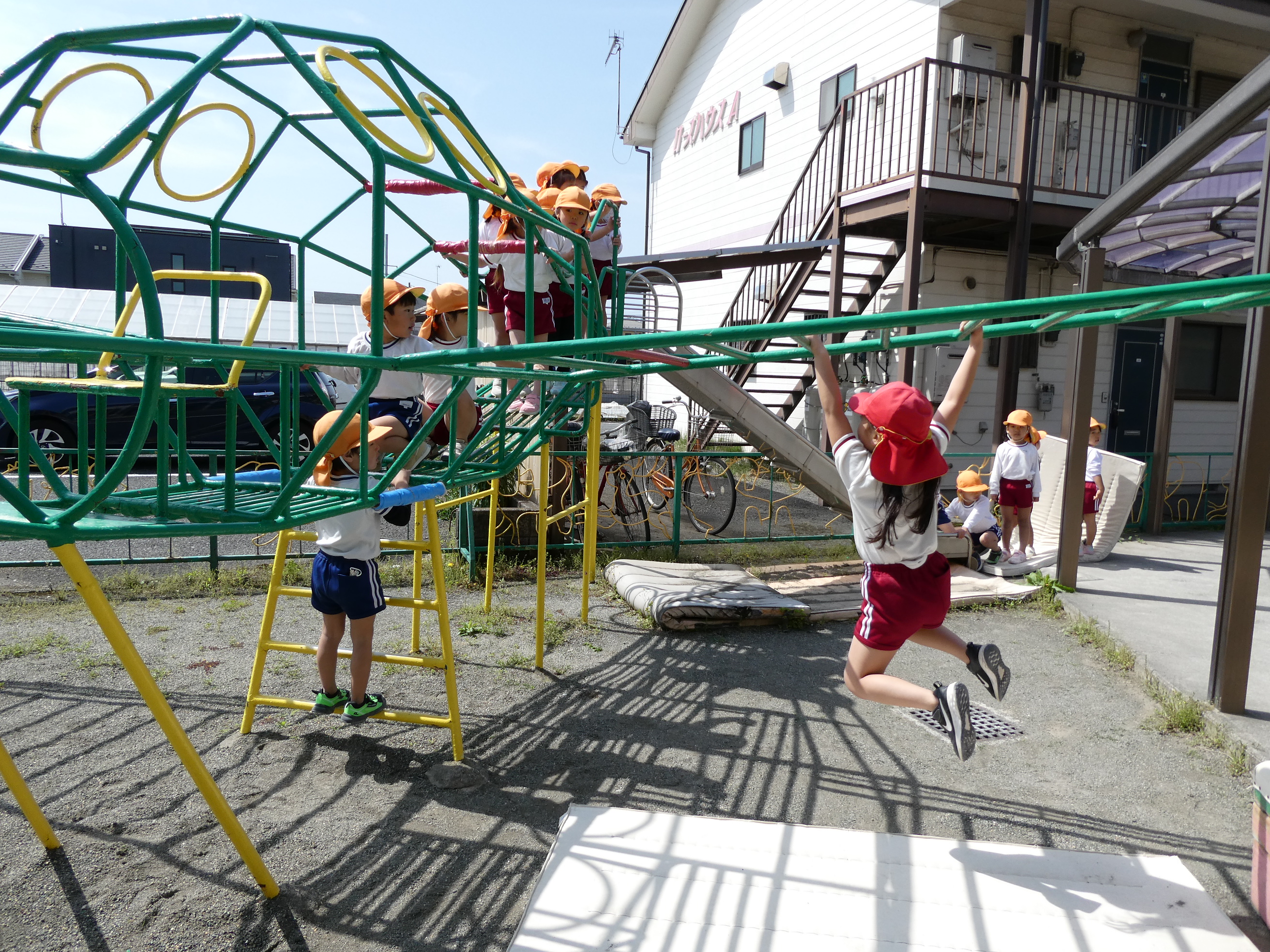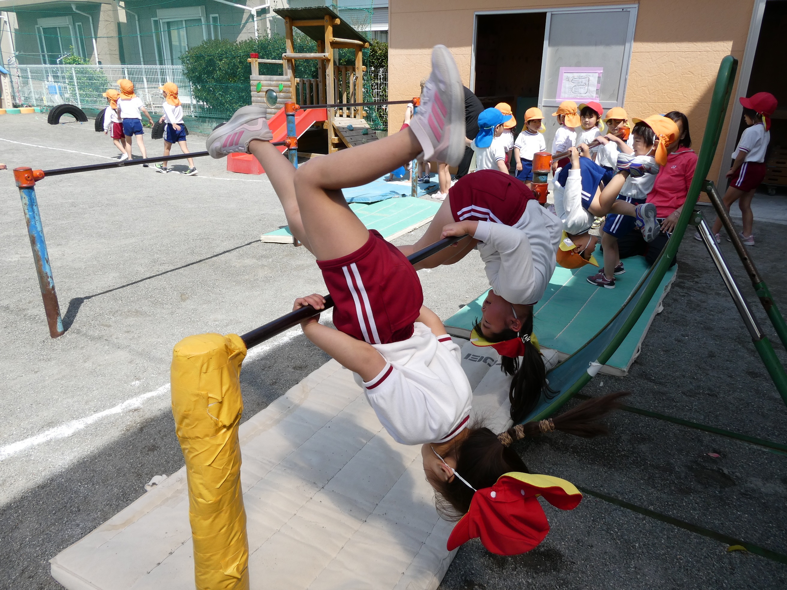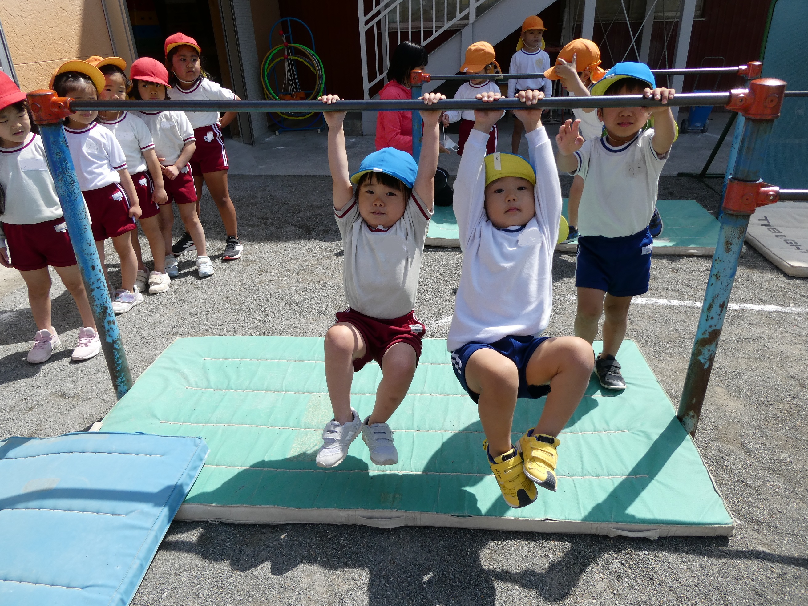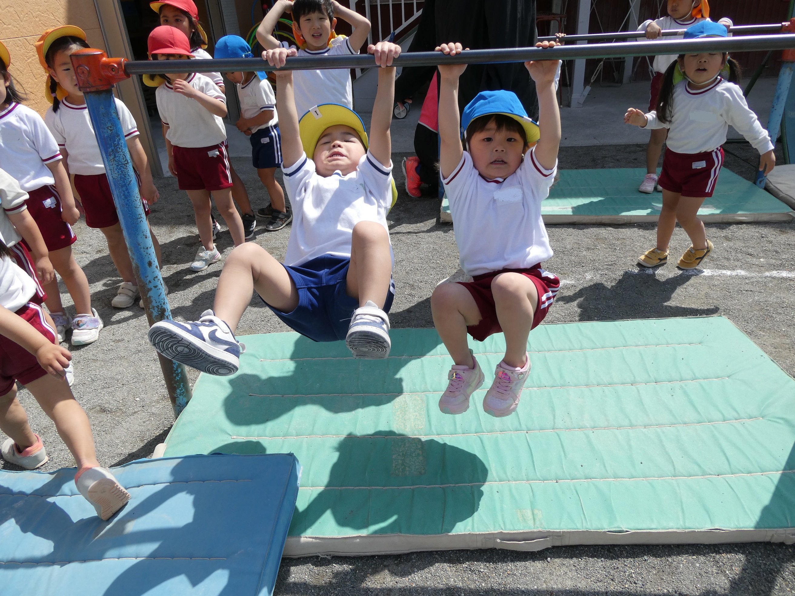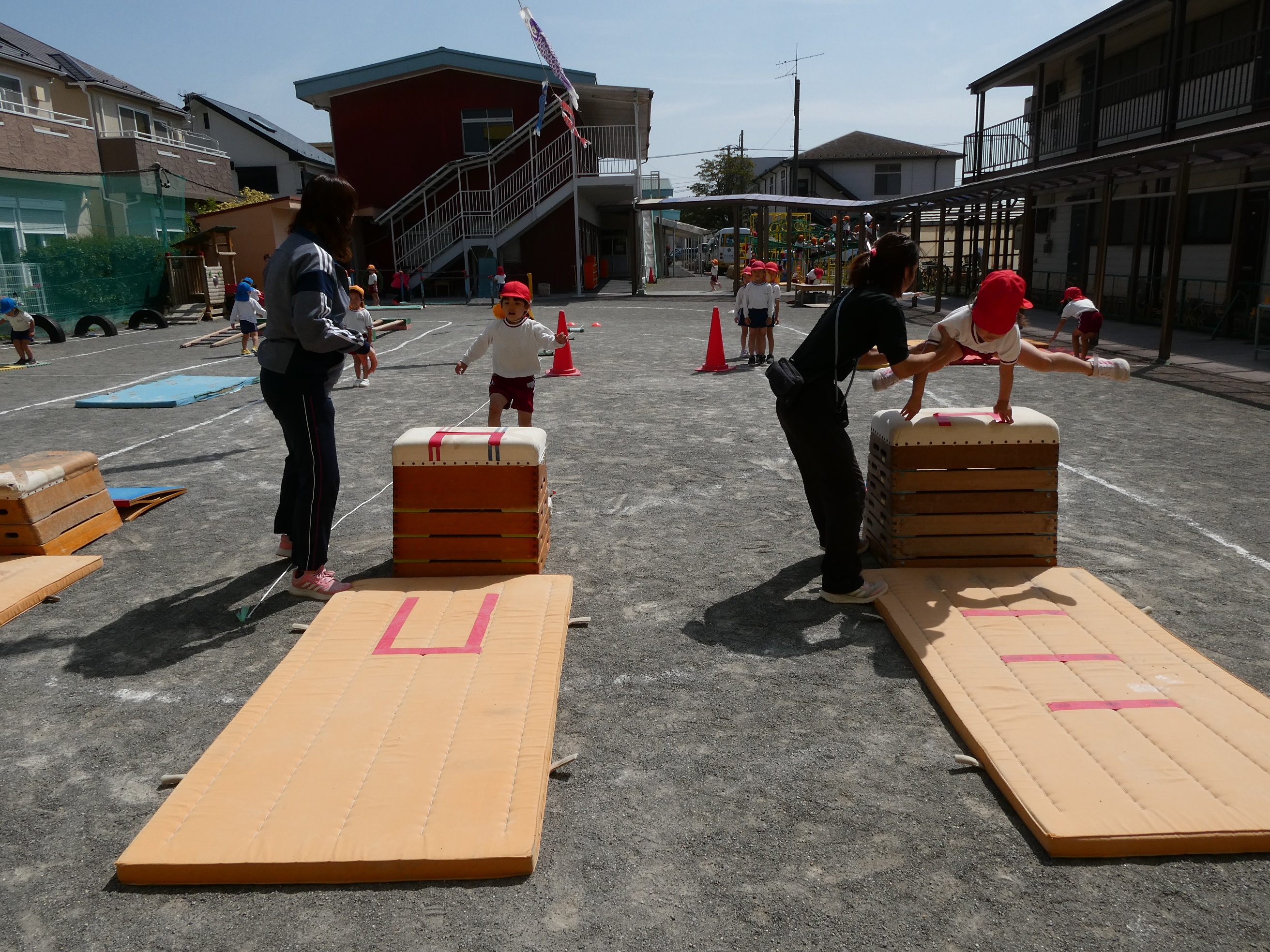 04/17 体育ローテーション 花乃幼稚園子ども達は、毎朝マット・平均台・跳び箱等いろいろな器具を配列して、子ども達がテンポよくそれぞれの器具を体験しながら、各自のペースに合わせて回る活動『体育ローテーション』を行っています♪出来なかった器具も、毎日繰り返し行う事で出来るようになり、体力もついてきます。そして身体も目ざめ、集中力にもつながり1日の始まりにぴったりな子どもたちの大好きな活動です!