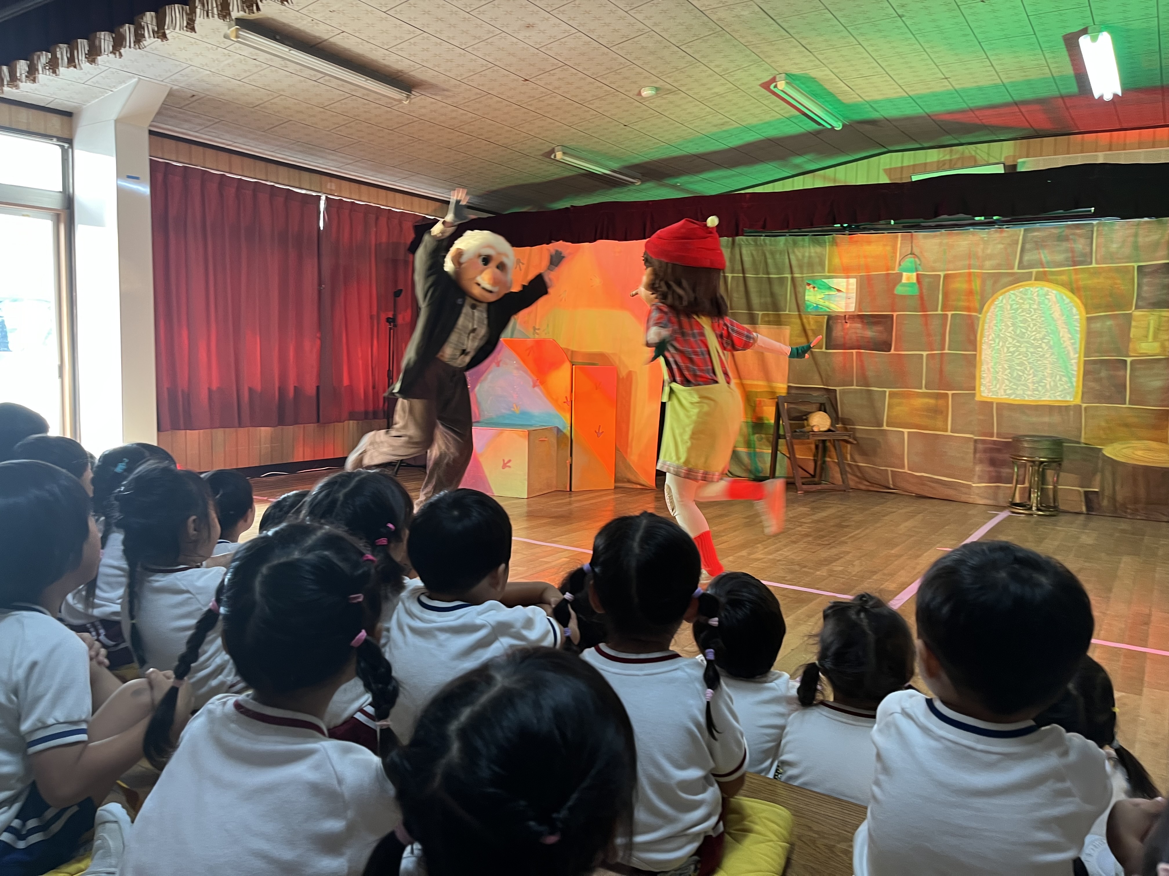 今日は楽しみにしていた、観劇『ピノキオ』です♪劇団バンブーの方と一緒に、楽しい手遊びを楽しんだ後にはじまりはじまり・・・ ピノキオのひょうきんな姿に、子供たちも大笑い!!大きなクジラが出てきたり、ピノキオの鼻が伸びたり…見どころが沢山あり目が離せませんでした☆また、来年も楽しみだね♪