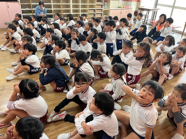 毎月大盛り上がりのお誕生日会☆11月生まれのお友達にみんなで歌をうたって、おめでとうのプレゼント♪一番盛り上がるのは、先生のお楽しみの出し物です!今日もみんなで大笑いでした(^-^)来月も楽しみだね。