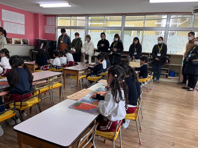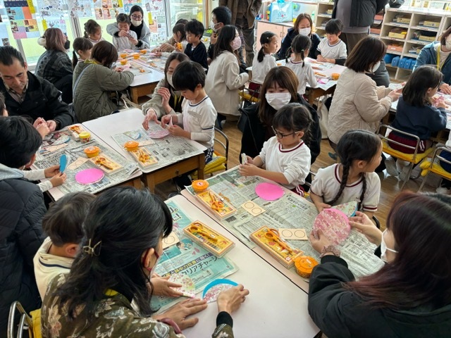 02/17 保育参観 保育参観が行われました。前回見ていただいた時よりも、さらに落ち着きがあり、姿勢もよく活動に取り組んでいる姿を見ていただけたと思います♪年長組は、さすがもうすぐ1年生!という感じでした。おうちの方と一緒に行った制作は、とっても素敵な作品に仕上がりましたよ(*^-^*)