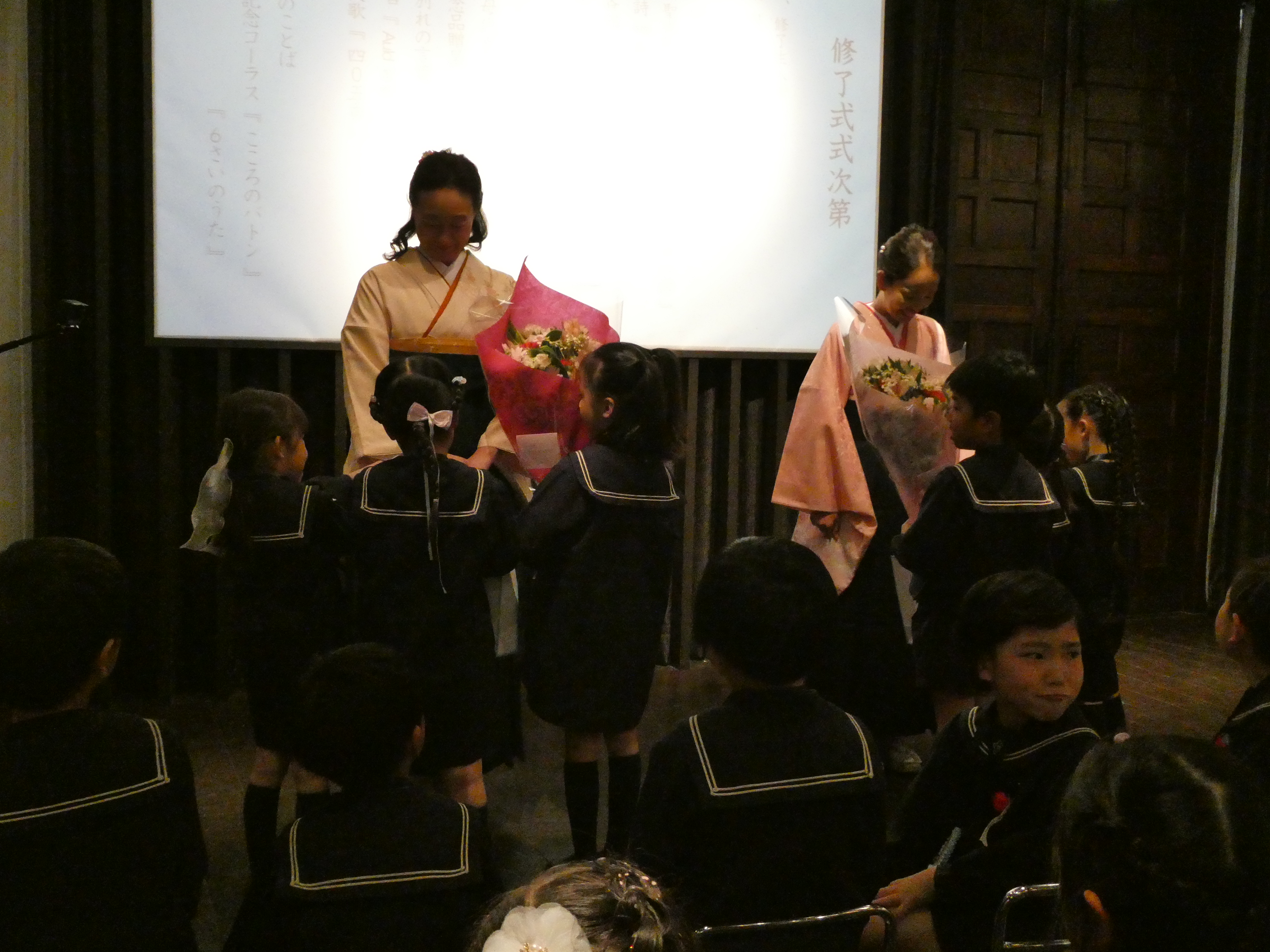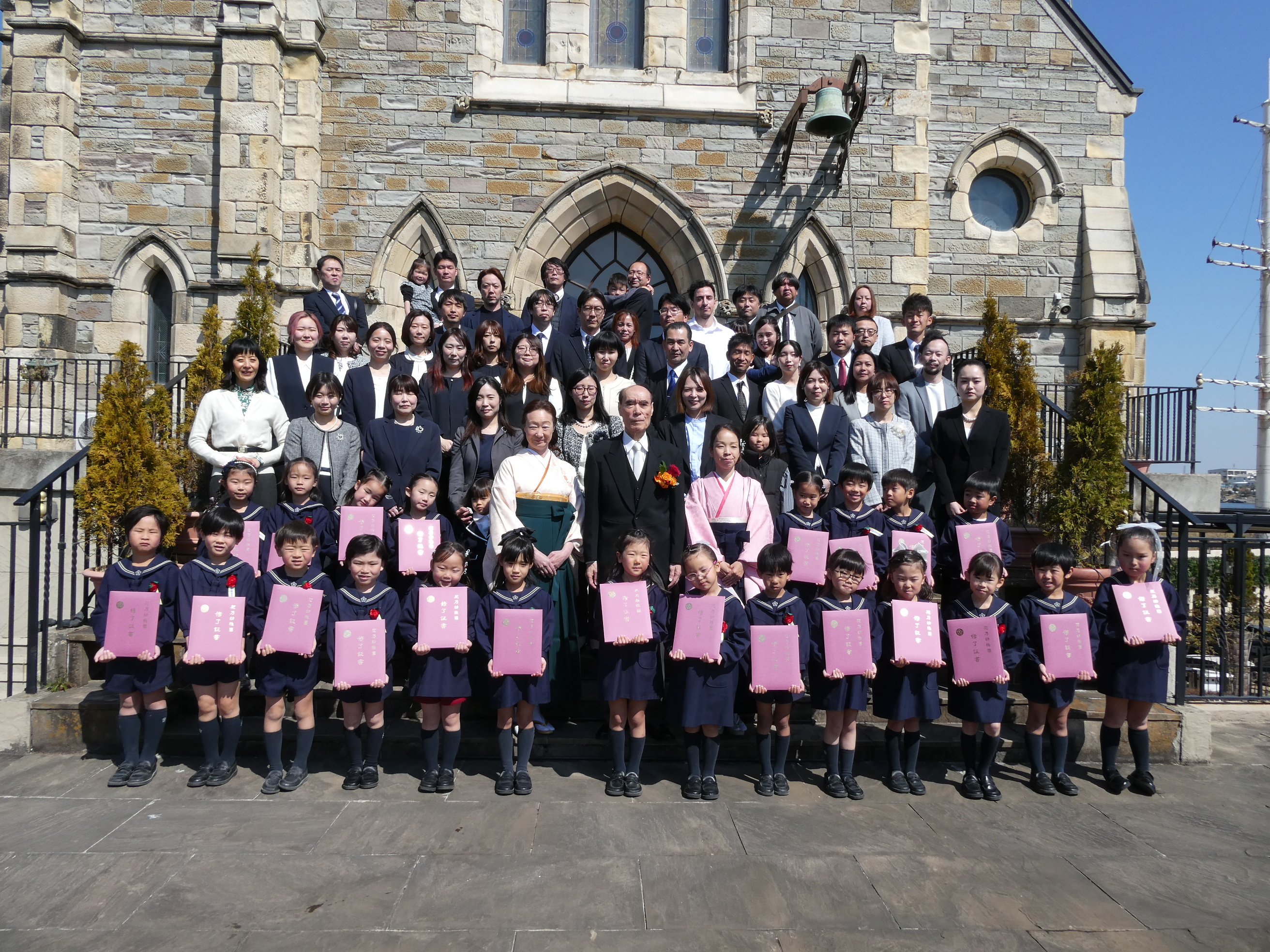 一人一人修了証書を受け取る姿は、とても立派でした。年長組のみんなは、園生活での様々な経験を通して、友達を思いやり大切にする、心優しい子供たちに成長してくれました。素晴らしい子供たちに出会うことができ、感謝の気持ちでいっぱいです!これから先も、それぞれの力を発揮してさらに成長してくれることでしょう。小学校に行っても、頑張ってね。応援しています。