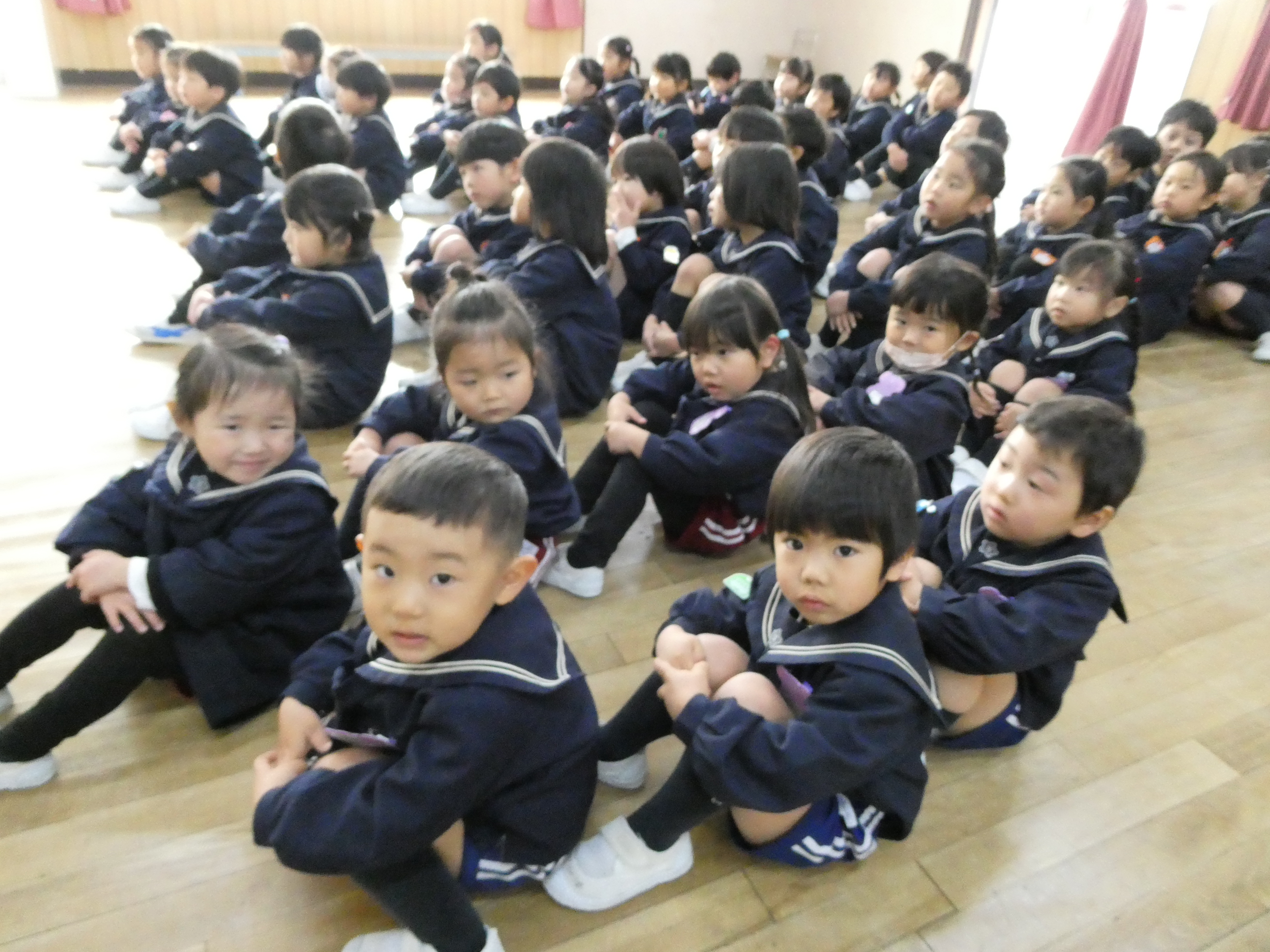 03/13 3学期終業式 今日でポピー組で過ごすのも最後です…この1年で大きく大きく成長した子どもたち。大好きな先生とお友達と過ごした日々は宝物だね!年少さんになっても、ニコニコ笑顔のかわいいみんなで頑張ってね!
